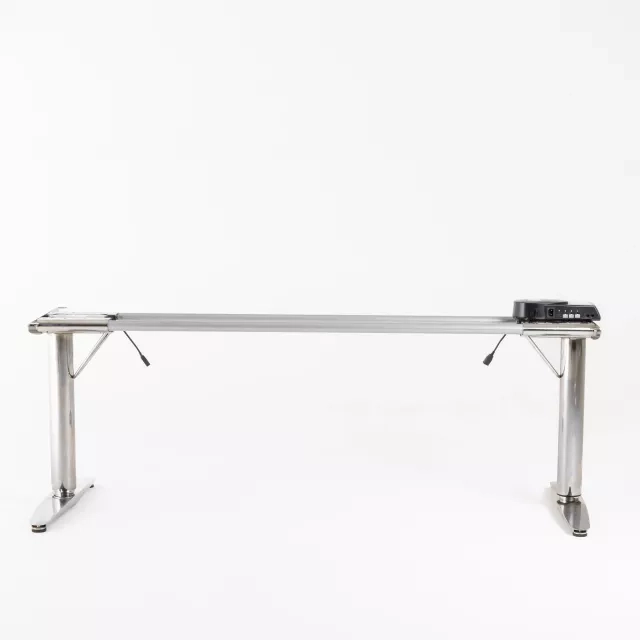 Höj- och sänkbart skrivbord för professionella miljöer där ergonomi och funktion prioriteras. Höjden justeras mellan 630-1220 mm för enkel växling mellan sittande och stående arbete. Det återbrukade bordet är ett miljövänligt val som stödjer cirkulära inköp.