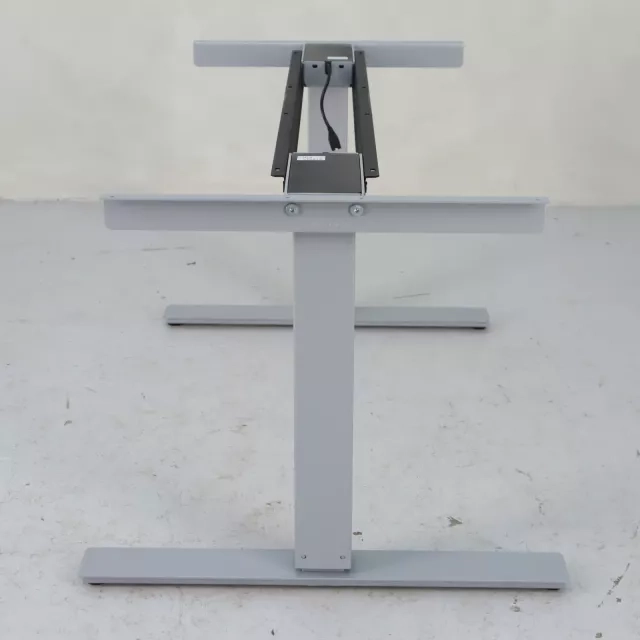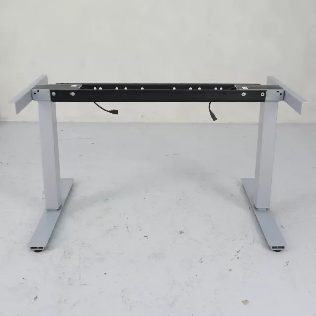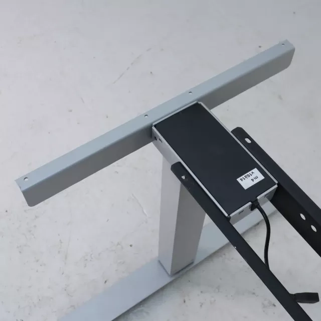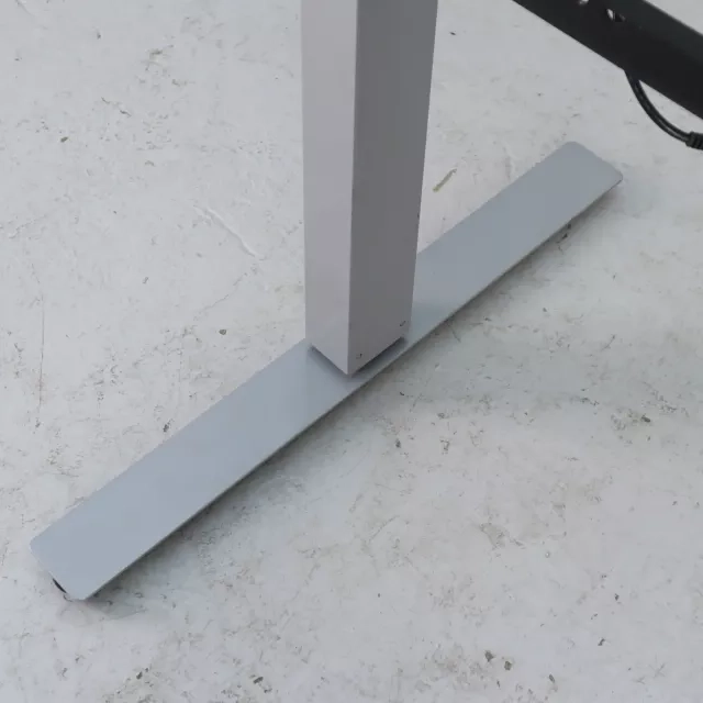 The height-adjustable two-column table base from Horreds offers businesses a flexible solution for dynamic office environments. With a sleek grey finish and T-leg design, this reused base supports adjustable heights from 600 to 1240 mm, catering to a variety of desk needs and ergonomic considerations.
