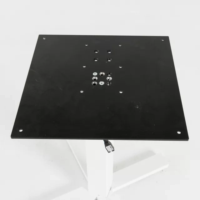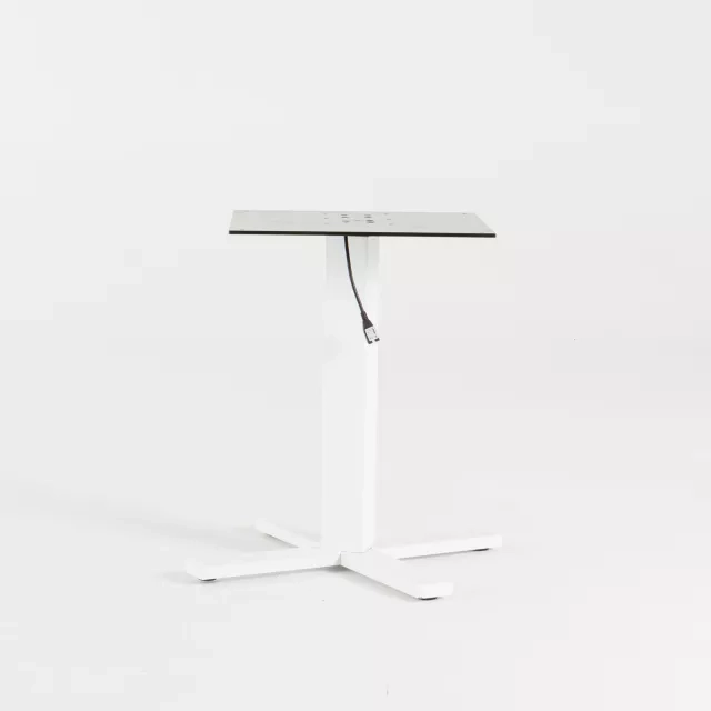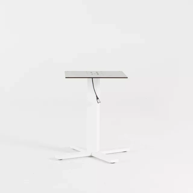 Höj- och sänkbart bord med en pelare för flexibla arbetsmiljöer. Höjden kan justeras från cirka 550 till 1220 mm för både sittande och stående arbete. Toppfästet på 400x400 mm passar bordsskivor med motsvarande infästning. Den kompakta enpelarlösningen frigör benutrymme och underlättar städning i miljöer med hög belastning.