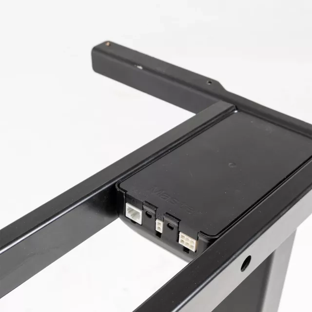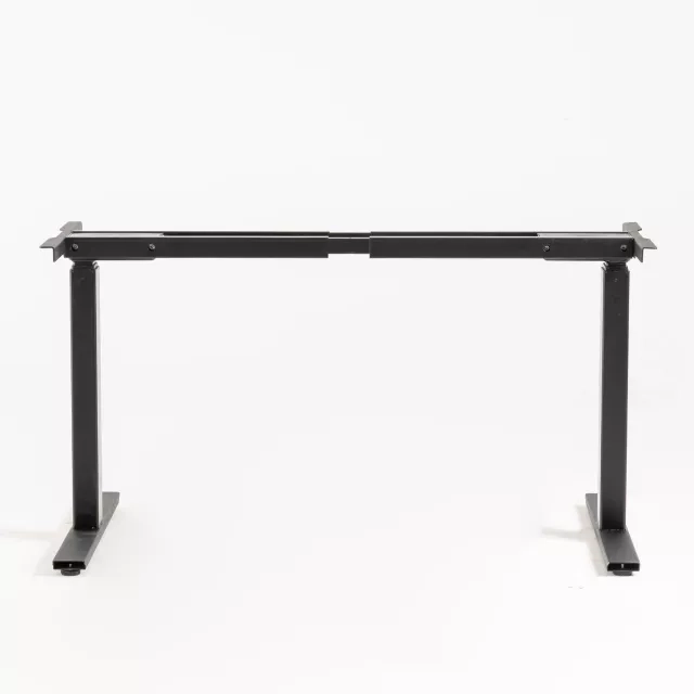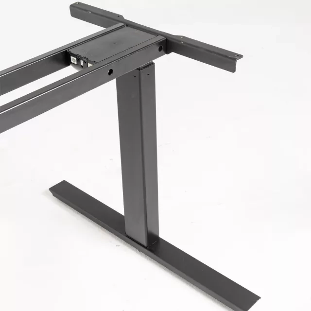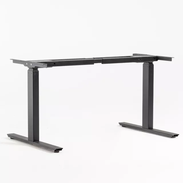 This pre-owned height adjustable desk features a two-column frame for stable sit-stand work in modern offices. The height range is 590 to 1240 mm, enabling ergonomic posture changes throughout the day.