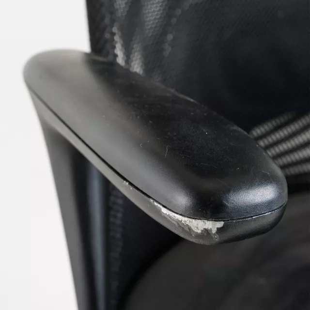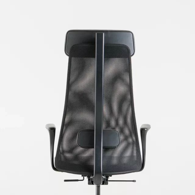 This IKEA Järvfjället desk chair includes armrests and a high back with integrated head support. The contoured seat and ventilated back encourage an upright, supported working posture. Arm support reduces strain on shoulders during typing and calls. The tall headrest offers added comfort when reading or attending video meetings. Each chair is quality checked by our technicians to ensure consistent function in daily use. Dimensions and proportions suit standard workstation setups.