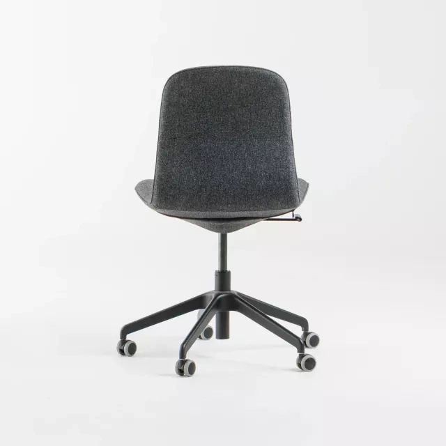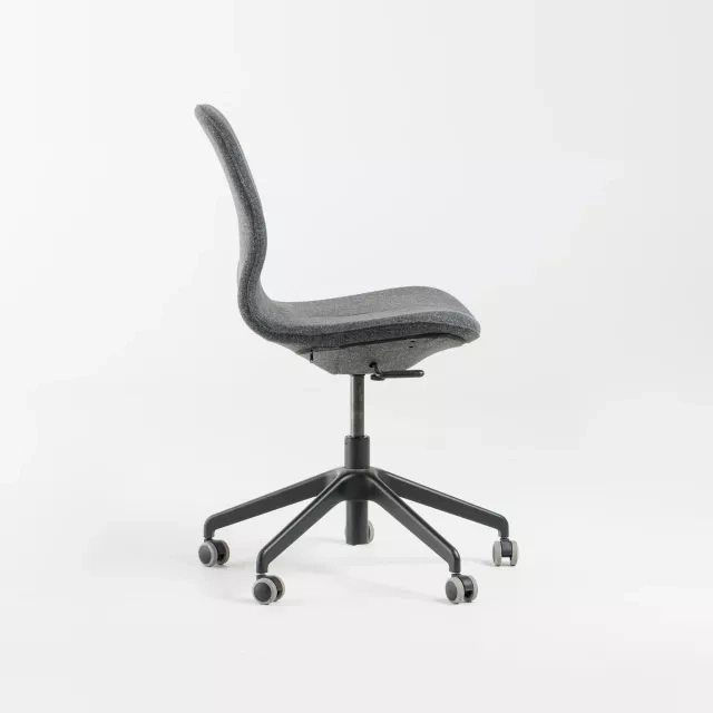 Den höj- och sänkbara konstruktionen gör det enkelt att anpassa sittpositionen under dagen. Hjul under basen ger smidiga förflyttningar mellan skrivbord och samarbetsytor.