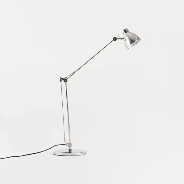 The IKEA Antifoni desk lamp is a dependable task light for focused work in offices, studios and libraries. This pre-owned piece offers clear, direct illumination while maintaining a compact footprint on the desk. The adjustable arm and rotatable head let you aim light exactly where it is needed. Choosing a refurbished Antifoni extends product life and supports a more resource-efficient workspace.