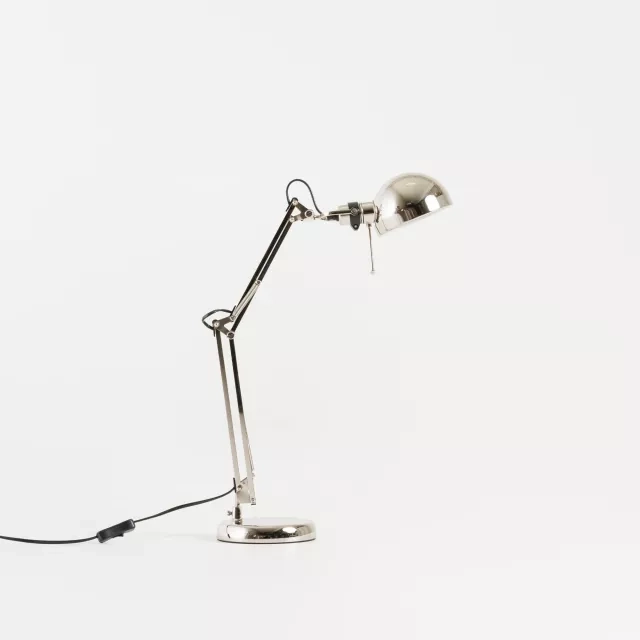 The Forså desk lamp from IKEA, crafted with nickel-plated steel, represents an elegant and durable lighting solution for professional workspaces. This desk lamp, falling under the category of table lamps, offers focused lighting, enhancing productivity and ensuring adequate illumination for tasks.