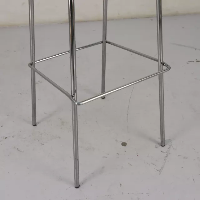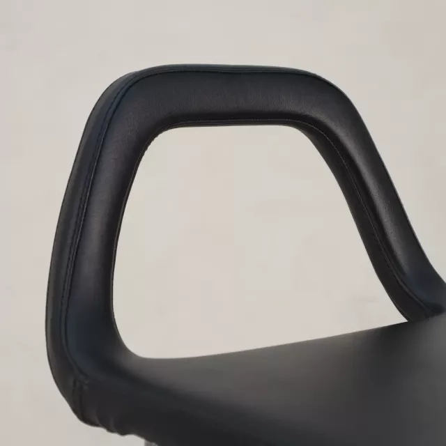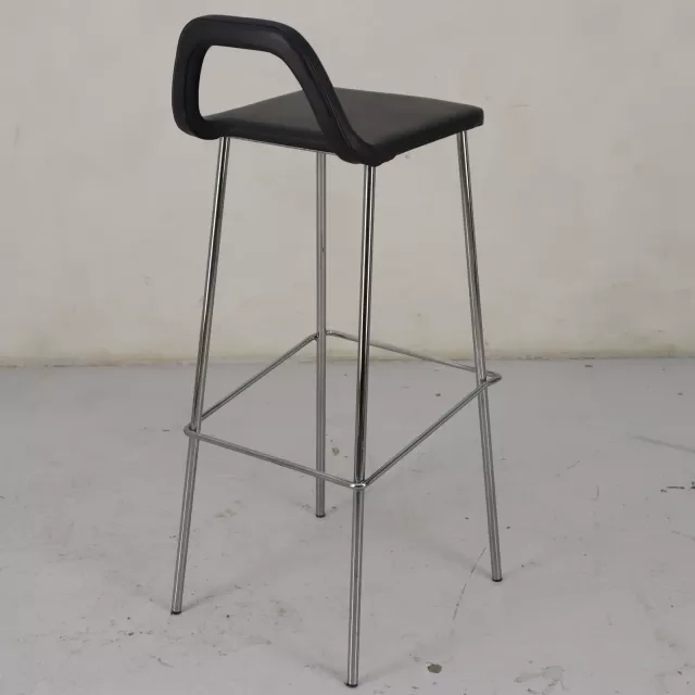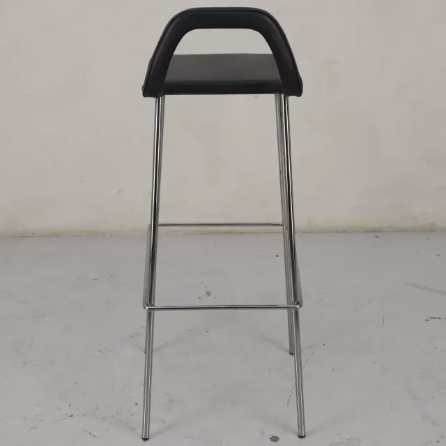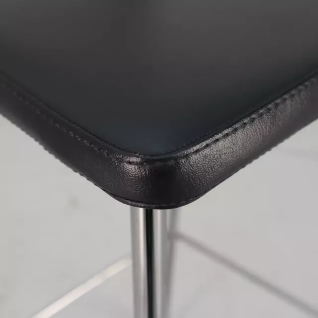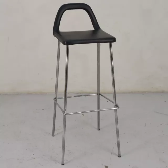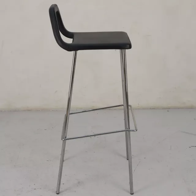 Her er den genbrugte barstol Studio fra Johanson Design, designet af Alexander Lervik. Denne model, betrukket med elegant sort kunstlæder, er Möbelfakta-mærket, hvilket garanterer både holdbarhed og kvalitet. Med sin indbyggede fodstøtte og moderne design passer den udmærket ved kaffebordet eller i personalekantinen og tilfører både stil og funktionalitet til ethvert miljø.