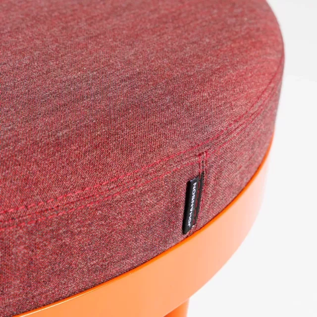 The Shima pouf from Johanson Design is a reused round stool for modern workplaces. This model is padded and upholstered in a red fabric that delivers inviting soft seating. Designed by Moritz Böttcher and Nikolaus Kayser, it is Möbelfakta labelled for assured specification.