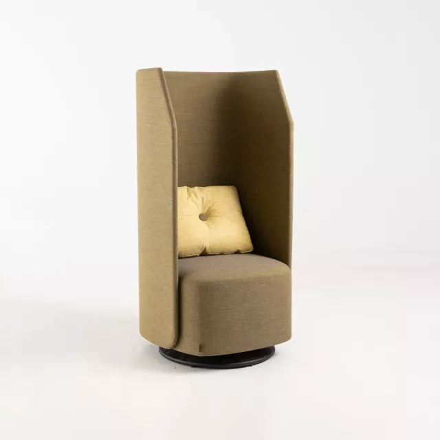 The high and encompassing armchair, Fields from Kinnarps, is a masterful blend of comfort and functionality. With its swivel base and auto-return mechanism, this chair offers flexibility while maintaining ergonomic support in any office setting. Upholstered entirely in premium fabric from Kvadrat, it adds a touch of elegance to the workspace, enhancing both aesthetics and utility.