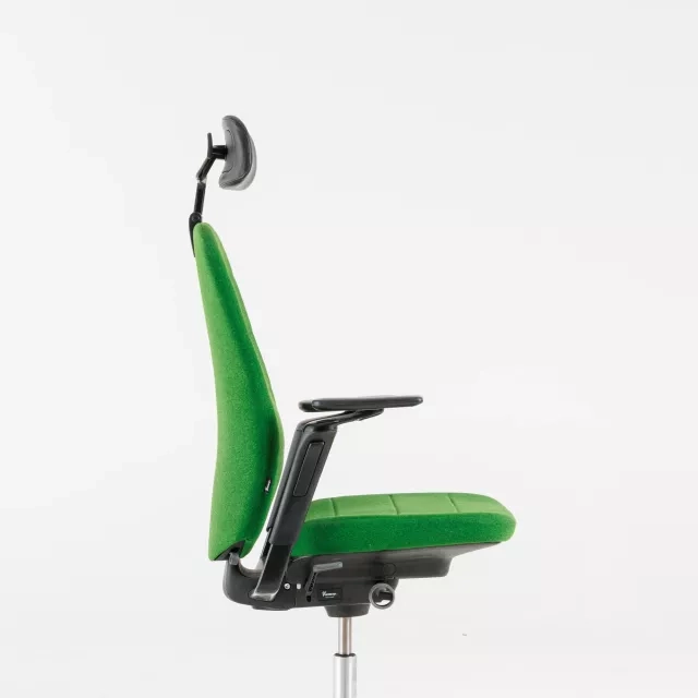 FreeMotion allows the seat to follow your natural posture with subtle multi-directional motion. The high back provides stable lumbar and thoracic support, while the headrest relieves neck loading. Armrests help relax shoulders and improve precision work. The Capella office chair from Kinnarps offers intuitive controls that make it easy to fine tune sitting height and tilt. It is a solid choice for focus workstations, executive offices and project rooms.