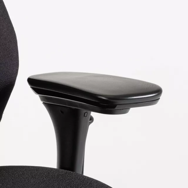 The Kinnarps Plus 8000 office chair offers reliable ergonomics for daily desk work. This high back model is fully upholstered in black fabric for a unified look. Designed by Johan Larsvall and Torbjörn Höjer, it balances form and function for professional workplaces.