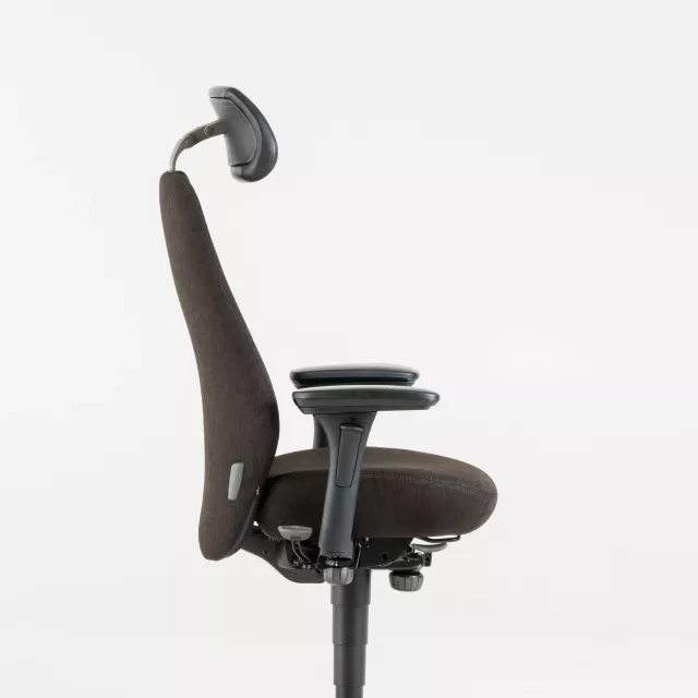 Adjustable armrests and a supportive headrest help maintain posture through long work sessions. The Synchrone mechanism coordinates seat and back movement for natural motion and balanced support. A height adjustable seat lets different users find an ergonomic setup quickly. Together these functions make the Kinnarps Plus 8000 task chair a robust ergonomic choice.