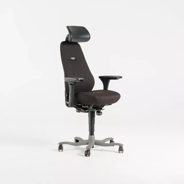 The Kinnarps Plus 8000 office chair is a pre-owned, high-back model designed by Johan Larsvall and Torbjörn Höjer. It is fully upholstered in durable black fabric for everyday use. This refurbished task chair offers reliable build quality recognised in professional workplaces.