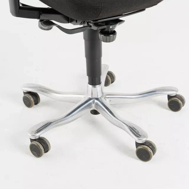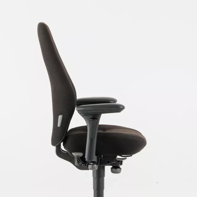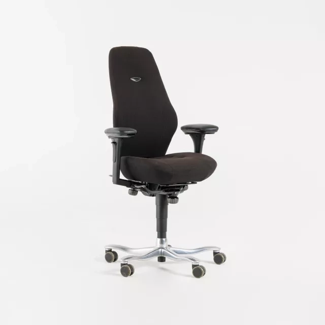 The Plus 8000 Soft is an office chair from Kinnarps with a high back and armrests. Designed by Johan Larsvall and Torbjörn Höjer, it delivers reliable ergonomic support. The chair is fully upholstered in durable black fabric suited to intensive workplace use. As a pre-owned model, it supports a more circular office setup while maintaining professional standards.