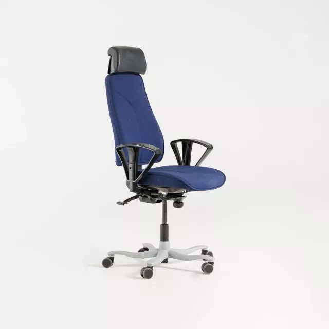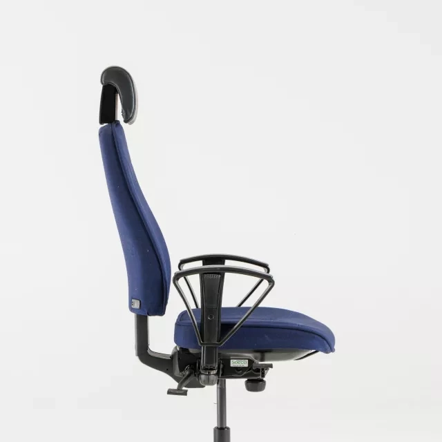 The Kinnarps Y-stol 6000 office chair is a reused high-back model for demanding workspaces. Designed by Björn Alge, it delivers reliable ergonomic support with a minimal footprint. Adjustable armrests and a supportive headrest help maintain a balanced posture through long meetings and focused tasks. Each chair is quality checked by our technicians to ensure consistent function in daily use.