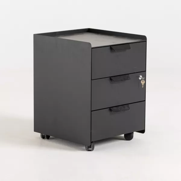 The Kinnarps rolling pedestal offers both functionality and sustainability with its chic, reclaimed design. Wrapped in a book finish, this unit houses four drawers, each equipped with a lock and key for secure storage, ensuring your office essentials remain organized and protected.