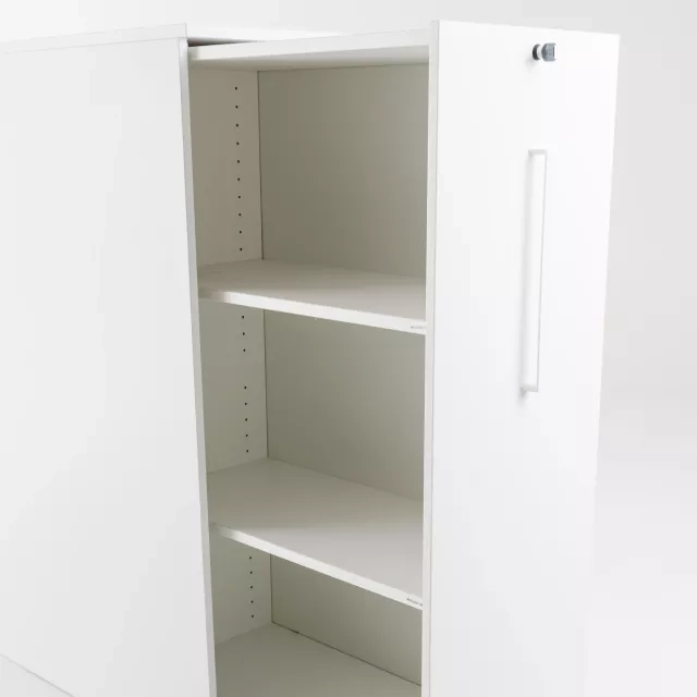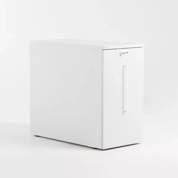 Som återbrukad kontorsmöbel bidrar skåpet till en mer resurseffektiv inredning. Kinnarps towerskåp i vitt tål daglig användning och harmonierar enkelt med befintliga möbler. Högerutförandet gör placeringen tydlig och effektiv bredvid bordsskivan. En pålitlig lösning för att samla dokument, IT-tillbehör och småprylar där de används.