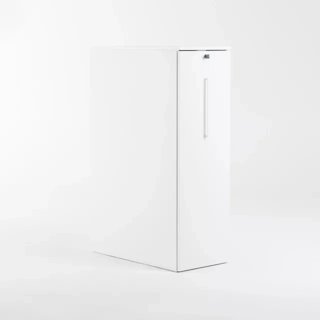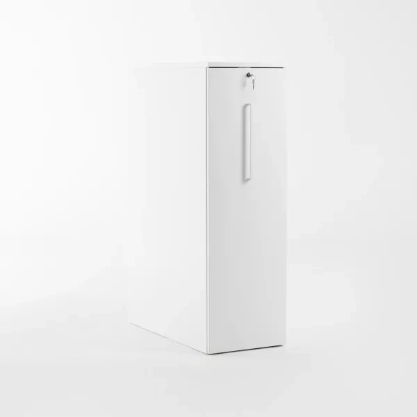 Detta vita towerskåp från Kinnarps är avsett för högerplacering intill ett skrivbord. Den smala, vertikala förvaringen ger snabb åtkomst till mappar och arbetsmaterial utan att ta onödig golvyta. Skåpet lämpar sig för aktivitetsbaserade kontor, projektområden och traditionella arbetsstationer där personlig förvaring behövs nära arbetsytan.