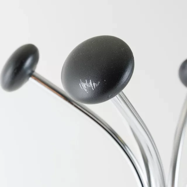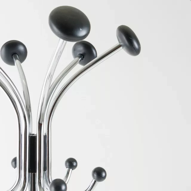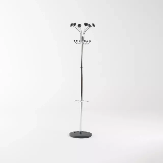 Alba’s Chromy coat stand is a freestanding solution for offices, receptions and meeting rooms that need orderly storage for outerwear. The frame is crafted in chrome metal with contrasting black details that give a clean and professional expression. This pre-owned Chromy coat stand from Alba supports circular purchasing and helps reduce environmental impact in public and corporate interiors. The robust metal construction is easy to wipe clean and withstands daily use in high-traffic areas. Its neutral finish coordinates well with both classic and contemporary furniture. Chromy from Alba is suitable for visitor areas, project spaces and staff entrances where reliable hanging space is required. The compact footprint makes placement straightforward in corridors and lounge settings. Use it to consolidate coats, bags and umbrellas so that walkways remain clear and welcoming. Choose the Chromy coat stand from Alba to strengthen order, extend product life and align with your organisation’s sustainability goals.