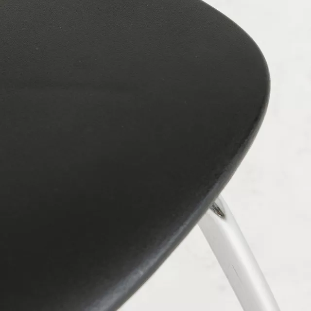 The plastic surfaces are simple to wipe clean, which supports hygiene in busy environments. The chrome plated steel base provides strength and long service life under frequent use. Its balanced proportions support tight, space efficient layouts while maintaining user comfort.