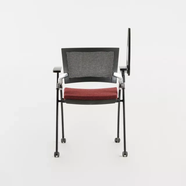 The conference chair Vega features an integrated writing tablet for compact, task-focused seating in meeting rooms, training spaces and auditoriums. This pre-owned model supports note taking and light laptop work during sessions.