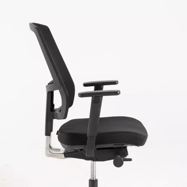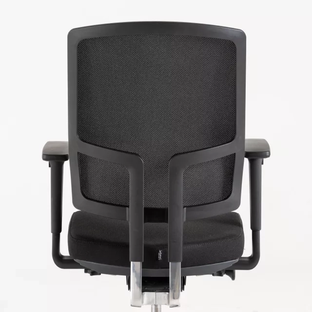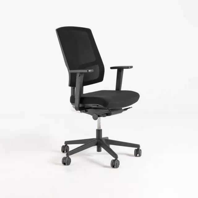 This pre-owned Sitland office chair combines a black fabric seat with a breathable black mesh back. Adjustable armrests support varied working postures throughout the day. The mesh encourages airflow in warmer offices and the padded seat offers steady comfort during longer tasks.