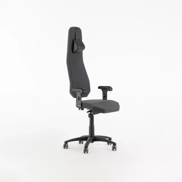 Ullmanstolen is an office chair built for daily seated work. This reused model suits a wide range of users. Armrests and a supportive headrest help reduce strain during long tasks.