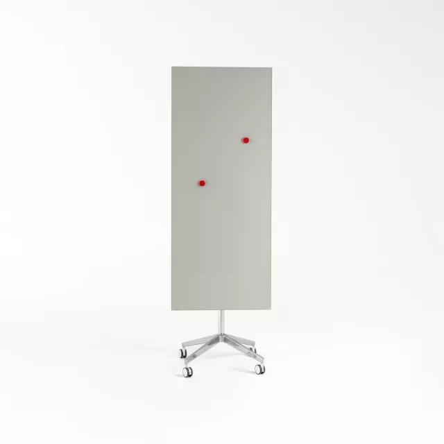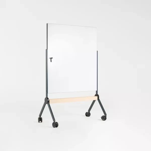 The whiteboard Mood Mobile from Lintex is a pre-owned mobile glass board on wheels, designed by Halleroed. Its hardwearing writing surface wipes clean quickly and supports intensive, day-to-day use in modern workplaces. Use it for stand-ups, workshops and training sessions where ideas must be captured and shared at speed.