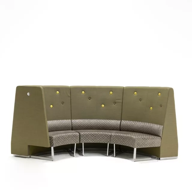 Choosing a reused Lemur modular sofa reduces environmental impact compared with new production and safeguards budget. Materia's contract quality construction is built for high traffic spaces and straightforward maintenance. The Lemur modular sofa from Materia suits offices, reception zones, co-working hubs and educational settings where flexible, durable seating is required.