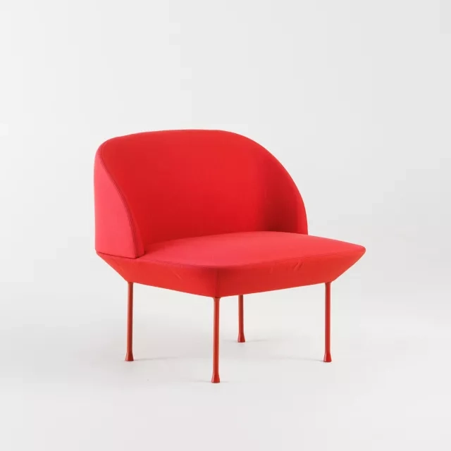 The armchair Oslo from Muuto brings Scandinavian clarity to reception areas, lounges and informal meeting zones. Fully upholstered in red Steelcut by Kvadrat, it combines tactile comfort with high abrasion resistance suited to professional use. Red lacquered steel legs emphasise the minimalist expression and make placement straightforward across varied interior schemes. Designed by the acclaimed duo Anderssen & Voll for the Danish brand Muuto, the armchair Oslo from Muuto suits companies seeking a circular furnishing strategy. As a pre-owned piece, it gives quality design a second life and supports sustainability targets in office and public environments. The compact footprint works well where space is at a premium, while the enveloping seat provides relaxed comfort for waiting areas and breakout spaces. Pair several units to zone collaborative settings or use a single chair to add a confident accent in meeting lounges. Materials and finishes are selected for longevity, making this model suitable for daily, high-frequency use.