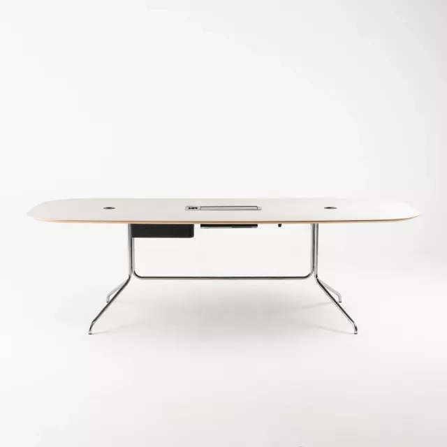Lämpligt för att främja produktiva samtal, erbjuder konferensbordet Bond en praktisk men elegant lösning för professionella mötesrum. Dess sömlösa integration av teknik och design skapar en banbrytande konferensmiljö med bibehållen estetisk tilltalande.