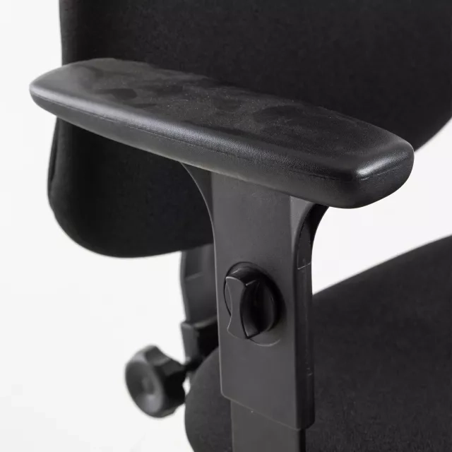 Kontorsstolen Ronna från Officeline är ett hållbart alternativ för moderna arbetsplatser och erbjuder utmärkt komfort med sin helklädda design i slitstarkt svart tyg.