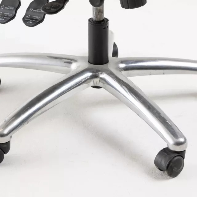 Utrustad med justerbara arm- och nackstöd, garanterar denna återbrukade stol från Officeline ergonomisk effektivitet och främjar en optimal sittställning under arbetsdagen.