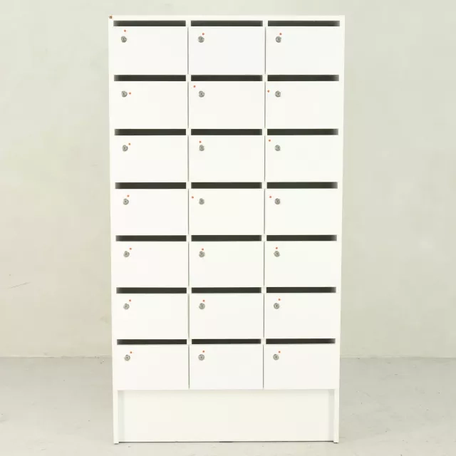 Enhance your office organization with this white lacquered mail cabinet featuring 21 compartments. This refurbished cabinet offers a practical and sustainable solution for managing your office correspondences. Each compartment is robustly designed to ensure longevity, making it suitable for daily use in busy work environments.