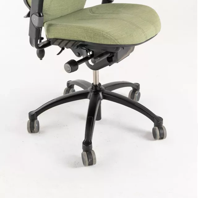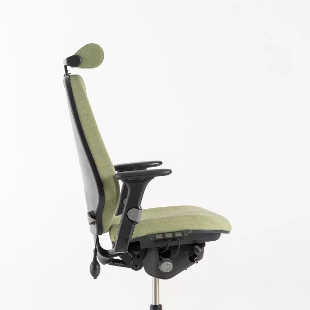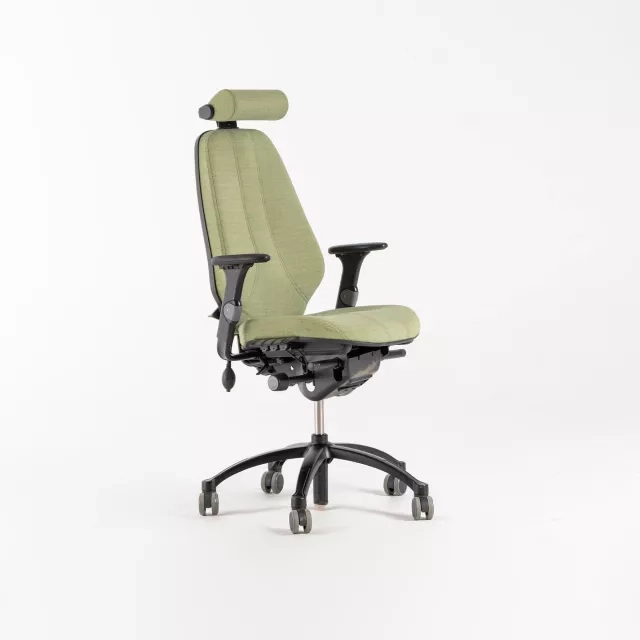 The office chair Logic 400 from RH is an ergonomic high-back task chair built for demanding workdays. This popular refurbished model includes adjustable armrests and a height adjustable headrest. An inflatable lumbar support enables precise lower back customisation and helps maintain a healthy posture throughout the day.