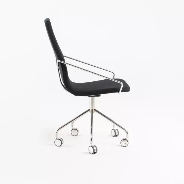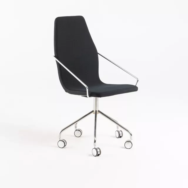 Skandiform Aeon conference chair on castors, designed by Claesson Koivisto Rune, enables agile meeting setups with effortless mobility and a professional look. The chair combines a chrome underframe with black fabric upholstery that handles daily use in conference rooms and project spaces. The wheeled base makes it easy to reconfigure layouts between sessions and to slide neatly under the table. As a pre-owned, circular choice, Aeon helps reduce environmental impact while maintaining a cohesive visual standard across your meeting areas. The chrome finish offers lasting stability and is simple to keep clean, while the understated black textile suits a wide range of interior palettes. The Skandiform Aeon conference chair works well for boardrooms, collaboration zones and visitor seating where flexible seating is needed. Choose Aeon by Skandiform when you want a design-led meeting chair with castors that supports efficient workflows and reliable everyday function in modern workplaces.