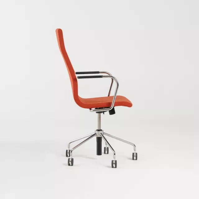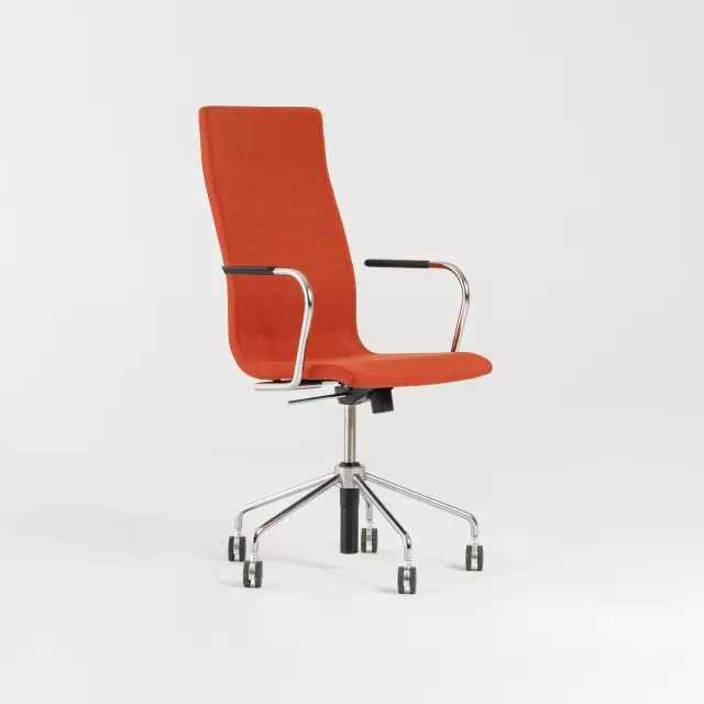 Konferensstolen Flex High F-298 från Skandiform är en återbrukad modell på hjul som passar mötesrum och utbildningsmiljöer där rummet ofta möbleras om. Stolen är helklädd i orange tyg och ger tydlig färgmarkering i samarbeten och projektzoner. Det förkromade stålunderredet ger stabilitet och gör förflyttningar enkla och tysta. Konferensstolen Flex High F-298 från Skandiform är Möbelfakta-märkt, vilket säkerställer krav på kvalitet, säkerhet och miljö. Formgiven av Ruud Ekstrand erbjuder den en ren och professionell karaktär som harmonierar med moderna kontor och offentliga miljöer. Som begagnad produkt bidrar den till en cirkulär inredning där resurser utnyttjas längre. Den fungerar utmärkt för företag, kommuner och organisationer som söker hållbara och praktiska möbler till sina möten och workshops. Välj konferensstolen Flex High F-298 från Skandiform när mobilitet, slitstyrka och tydlig design prioriteras.
