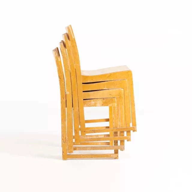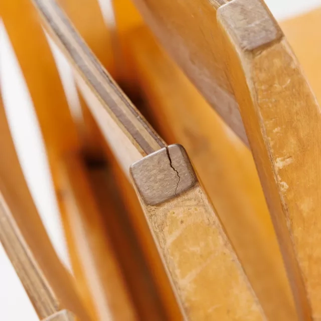 You can order Orchestra chairs in as-is condition with pronounced patina, or choose professional lacquering in your preferred colour for an additional charge. Repainting creates a coherent finish and can extend useful life in high traffic environments.