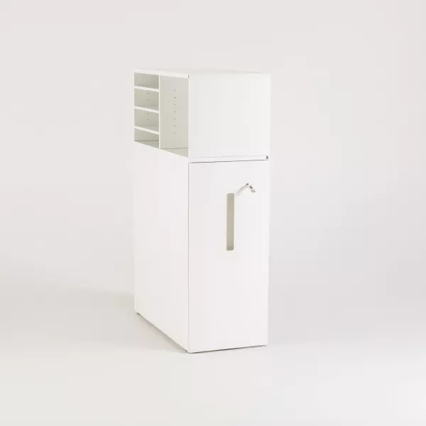 Båda sidor erbjuder lättåtkomliga fack och lås som skyddar dokument och personliga tillhörigheter. Lösningen stödjer aktivitetsbaserade arbetssätt och fungerar utmärkt som diskret avskärmning mellan platser. Towerskåpet är ett robust val för daglig användning i professionella miljöer.