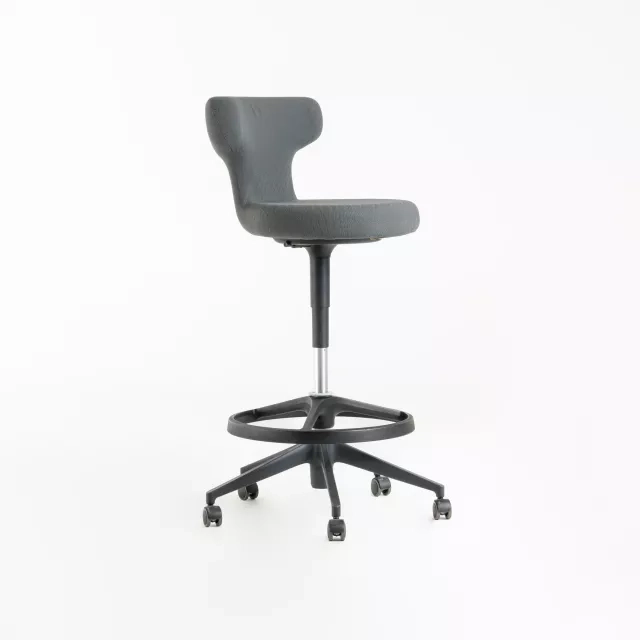Vitra’s Pivot High Stool is an office chair that works well with sit stand desks, collaboration hubs and reception counters. The foot ring provides stable leg placement and improves comfort during extended sessions at higher work surfaces. A compact format and robust construction make it suitable for dense layouts and busy teams.