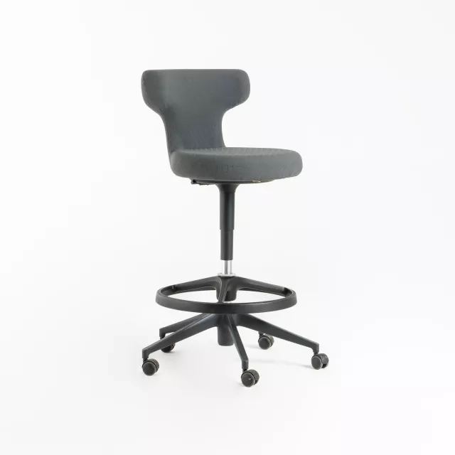 The Pivot High Stool office chair from Vitra combines elevated seating with practical support for agile work settings. Designed by Antonio Citterio, it features a supportive foot ring for confident posture at counter height. This pre-owned office chair has been carefully inspected to ensure reliable function and extended service life in professional environments.