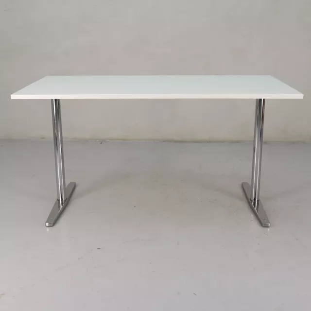 Materian neuvottelupöytä Centrum, suunnittelijoina Kersti Sandin & Lars Bülow, on erinomainen lisä toimistoympäristöihin. Valkoisen pinnan ja tukevan, hopeanharmaasta metallista valmistetun T-jalkarungon ansiosta tämä malli tarjoaa mukavasti tilaa jopa neljälle hengelle ja edistää tehokasta yhteistyötä. Monipuolinen muotoilu tekee siitä erinomaisen myös kiinteäksi työpöydäksi, joka yhdistää toiminnallisuuden ja tyylin kestävään ratkaisuun.
