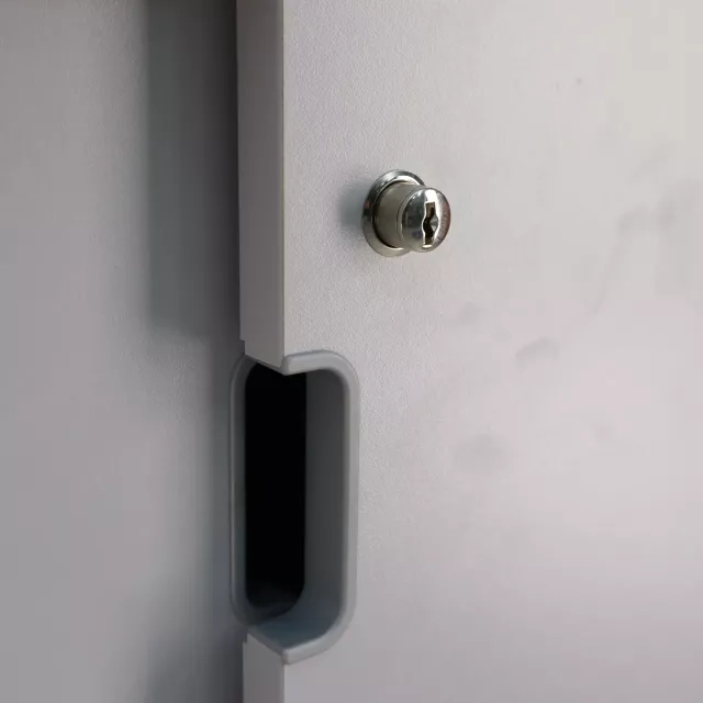 Edsbynin liukuovikaappi on esimerkki tilan tehokkaasta käytöstä ja harkitusta muotoilusta. Vaaleanharmaa sävy sulautuu luontevasti erilaisiin ammattimaisiin ympäristöihin, ja lukitustoiminto lisää turvallisuutta. Kaapin kompakti ja virtaviivainen muotoilu on tarkoitettu maksimoimaan toimistotila tinkimättä säilytyskapasiteetista.