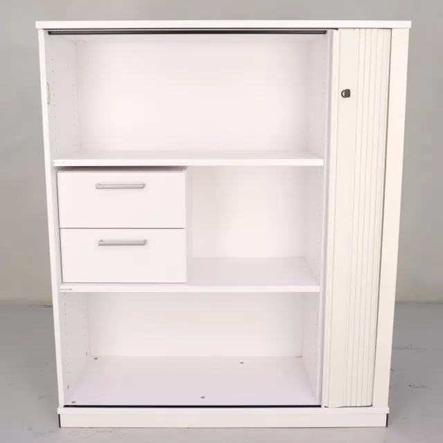 Kinnarpsin rulo-ovellinen kaappi, jossa on kolme A4-kansiokorkeutta, yhdistää elegantin muotoilun ja toiminnalliset säilytysratkaisut ja sopii moderneihin toimistoympäristöihin. Valkoinen pinta tuo tyylikkään, pelkistetyn ilmeen mihin tahansa toimistoon. Kaappi on lukittavissa avaimella ja varmistaa tärkeiden asiakirjojen turvallisen säilytyksen. Keskimmäisellä hyllyllä oleva integroitu sisäkaappi, jossa on kaksi ulosvedettävää laatikkoa, tarjoaa lisäkapasiteettia organisointiin ja maksimoi tehokkuuden tinkimättä tyylistä.