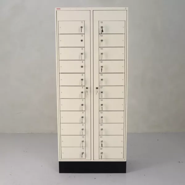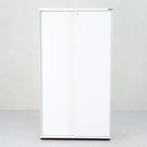 This reused and practical sliding door cabinet from Martela is an ideal choice for businesses seeking functional and secure storage solutions. Designed to accommodate three binder levels, the cabinet is both space-efficient and versatile for various office settings. It features a lockable sliding door with a key, ensuring the safety of your documents and equipment. Martela's commitment to quality is evident in the cabinet's durability and elegance, providing a sustainable option without compromising on aesthetics or utility.