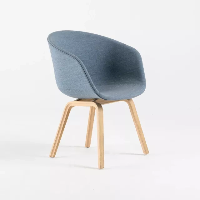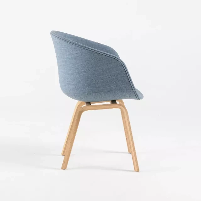 Uudelleenkäytetty kokoustuoli About a Chair AAC23 HAYlta, Hee Wellingin suunnittelema, yhdistää tyylin ja kestävyyden. Sen pehmustettu, kauttaaltaan verhoiltu ja syleilevä istuin ja selkänoja tarjoavat erinomaista mukavuutta neuvottelutiloihin samalla kun ilme pysyy modernina. Kvadratin kestävällä kankaalla verhoiltuna se vakuuttaa pitkäikäisyydellään ja esteettisellä vetovoimallaan.