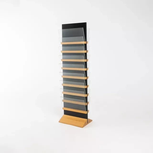 Karl Andersson & Sönerin Front-lehti- ja esiteteline on monipuolinen ratkaisu lukumateriaalin järjestämiseen toimistoympäristöissä. Kestävistä materiaaleista ja karkaistusta lasista valmistettu teline tarjoaa pitkän käyttöiän ja eleganssin yhdistelmän ja sopii erinomaisesti kirjoille, lehdille ja esitteille. Se on suunniteltu täyttämään ammattilaisten vaatimukset sekä toiminnallisuuden että tyylin osalta.
