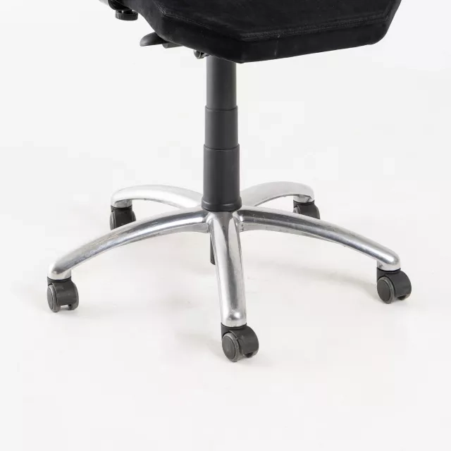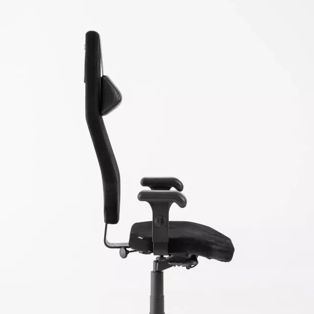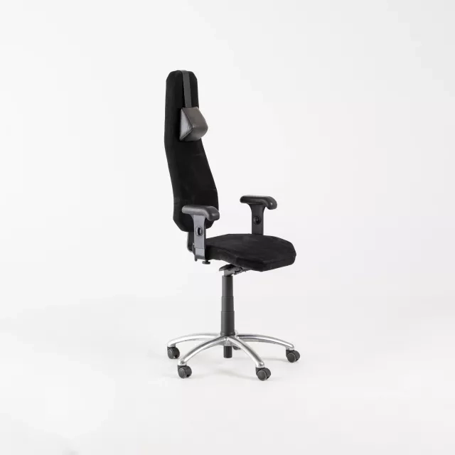 Uudelleenkäytetty Ullman-toimistotuoli on monipuolinen laatutuoli, joka tarjoaa poikkeuksellista mukavuutta ja ergonomiaa työpöytätyöhön. Yksilöllisesti säädettävän selkänojan ja istuimen ansiosta tuki on optimaalinen, ja tuolissa on säädettävät käsinojat sekä niskatuki yksilöllistä istumiskokemusta varten. Mustalla alcantaralla kauttaaltaan verhoiltuna se tuo sekä eleganssia että kestävyyttä mihin tahansa ammattimaiseen ympäristöön.