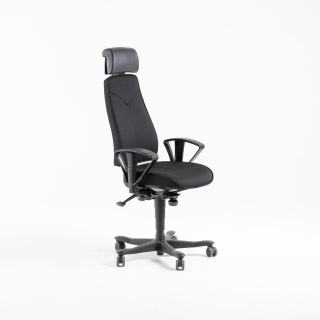 Tämä kunnostettu ja uudelleen verhoiltu Kinnarpsin 6000-työtuoli, jonka on suunnitellut Björn Alge, on dynaaminen ratkaisu moderneihin toimistoympäristöihin. Korkean selkänojan ja Freefloat-mekanismin ansiosta tuoli tukee joustavaa istuma-asentoa, joka lisää tuottavuutta ja mukavuutta pitkien työpäivien aikana. Kestävä musta Lido-kangas ja musta runko takaavat sekä kestävyyden että tyylin, ja säädettävät käsinojat voidaan säätää korkeuden ja sivusuunnan mukaan yksilöllisten tarpeiden mukaisesti.