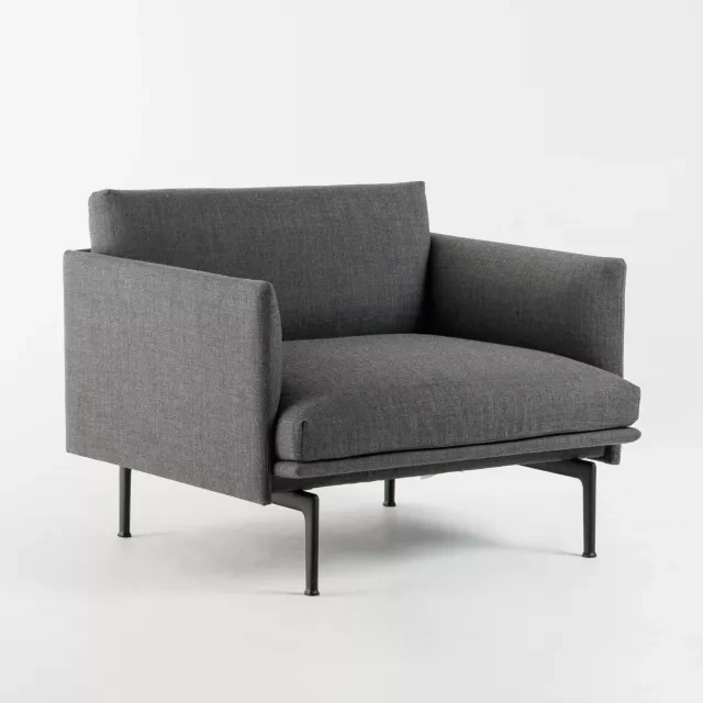 Kutsuva ja korkealaatuinen Muuton Outline Studio -nojatuoli, Anderssenin & Vollin suunnittelema, erottuu edukseen elegantilla ja modernilla muotokielellään. Täysin verhoiltu malli on verhoiltu kestävällä, harmaalla kankaalla, on uudenveroinen ja sopii erinomaisesti tuomaan tyyliä ja mukavuutta odotustiloihin, vierastiloihin tai sisäänkäynteihin.