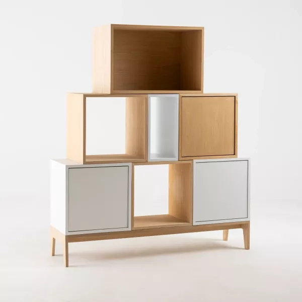 Massiivitammi tuo vakautta ja pitkän käyttöiän. Savusävyinen öljy syventää syykuviota ja on helppo ylläpitää arjessa. Gazzdan Mu sopii hyvin kirjallisuuden, pienten esineiden tai materiaalinäytteiden esillepanoon lounge-tiloissa, vastaanotoissa ja projektistudioissa.