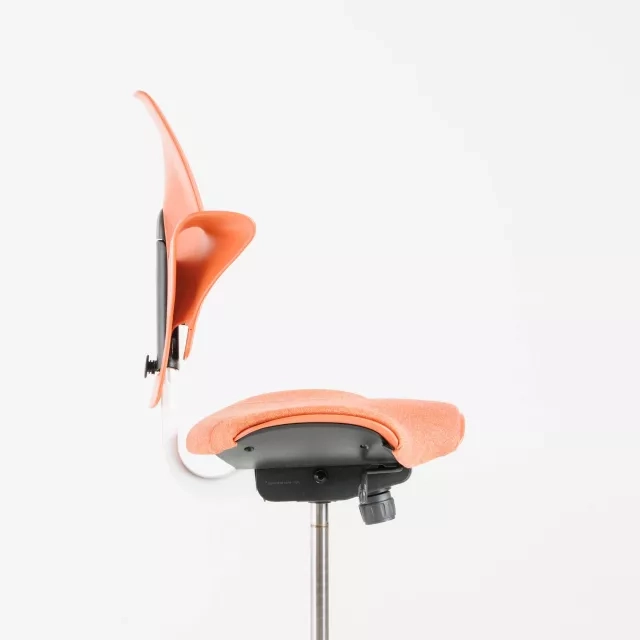 Justerbart och låsbart gungmotstånd ger kontrollerad rörelse. Sitthöjd, sitsdjup och ryggstödshöjd kan anpassas efter olika användare. Den höga kolven möjliggör högre sittpositioner och fungerar bra med höj och sänkbara skrivbord. Utformningen uppmuntrar variation och minskar statisk belastning vid längre arbetspass.